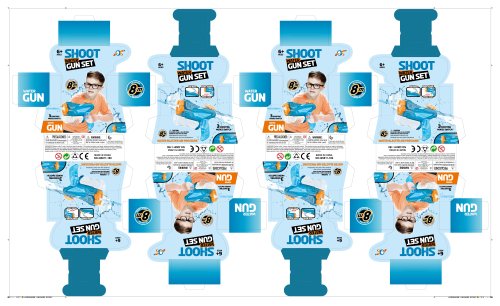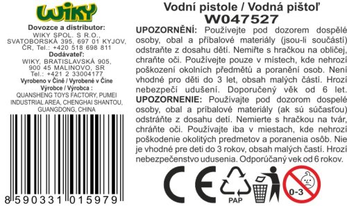 Vodná pištoľ. Rozmery 23x5x17 cm. Dostrel 8 m. Objem vodnej nádržky 300 ml.