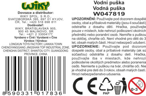Vodná puška. Presné rozmery 40x7x18 cm.