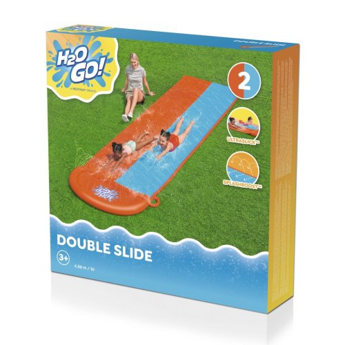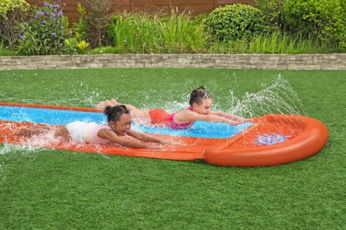 S touto parádnou šmykľavkou zažiješ tú pravú letnú zábavu. Vyrobené z testovaného masívneho vinylu. Približná veľkosť je 488 cm. Šmykľavka je pre dve deti. Šmýkačku zapoj do záhradnej hadice a uži si veľa zábavy. Zabudovaná spŕška v prednej časti šmykľavky. Opravná záplata súčasťou balenia.