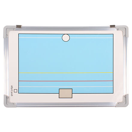 Potrebujete vykresliť svoj herný plán svojmu tímu? Magnetická tréningová tabuľa Vodné pólo 15 je skvelou pomôckou každého trénera pre vysvetlenie taktitky svojmu tímu počas vypätého zápasu. Tabuľa Vám poskytne to správne miesto na predstavenie vašej hernej stratégie. Obojstranná magnetická doska s farebne znázorneným poľom v hliníkovom rámčeku s rozmermi 45 x 30 x 2 cm as hmotnosťou približne 0,6 kg je vybavená dvoma háčikmi pre možnosť zavesenia. K dispozícii je tiež 14 magnetov s číslami, čiernym popisovačom a hubkou. Keď máte koučovaciu tabuľu, potrebujete pre svoj tím už len geniálny taktický plán!