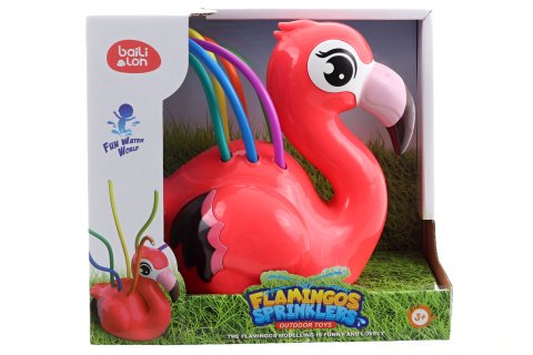 Rozstrekovací plameniak. Napojenie na záhradnú hadicu. Materiál plast. Balené v otvorenej krabici. Rozmery balenia cca 22x20x13 cm. Vek 3+
