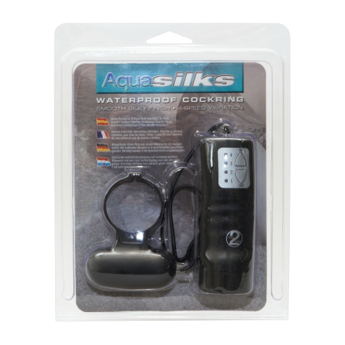 Vodotesný čierny vibračný krúžok na ovládanie - Aqua Silks Cockring