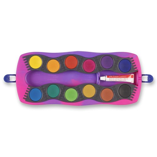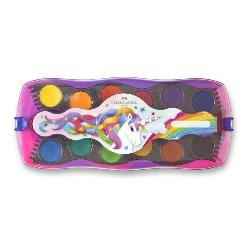 plastová paleta s priehľadným viečkom a mnohostranným využitím, * jednotlivé časti s farbou je možné rozložiť a ľubovoľne skladať, * vysoké krycie vlastnosti, * žiarivé a sýte farby, * tuba s bielou farbou, * sada samolepiek s motívom jednorožca