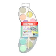 Vodové farby Kores AKUARELLOS, 12 pastelových farieb