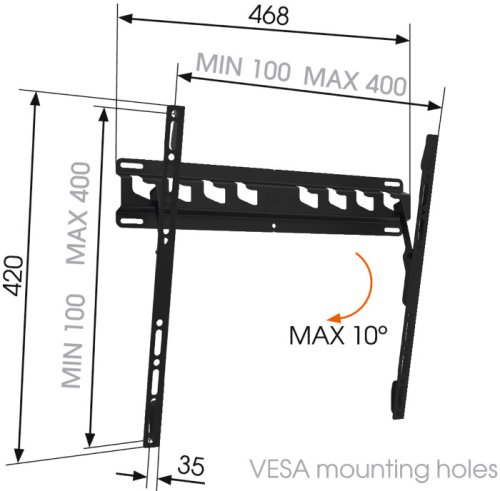 Spoľahlivý držiak na LCD s maximálnym pomerom výkon/cena Hlavné vlastnosti: - odporúčaná uhlopriečka 32-65" - nosnosť 40 kg - nastaviteľný náklon 0-10 ° - vzdialenosť TV od steny v polohe pri stene 35 mm - …