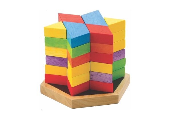 Základným prvkom týchto drevených kociek je drevený šesťhran. Kocky v rôznych variáciách tvarov a farieb vytvára spoločne so šesťhranom sadu nevyčerpateľných možností fascinujúcich stavieb. Ako budú pri hre vznikať rôzne hviezdy, trojuholníky, šesťhrany či iné tvary podľa vašej fantázie, môžu deti získavať skúsenosti v koordinácii, tvorivosti a súčasne si rozvíjať svoju predstavivosť a logiku. Deti môžu byť pomocou tejto hry zasvätené aj do tajov zlomkov. Samostatne môžu kocky slúžiť ako stavebné prvky na tvorbu aj iných rôznofarebných tvarov, ktoré môžete stavať aj mimo predpripraveného šesťhranu. Na inšpiráciu sú priložené vzory. Na začiatku teda môžete načerpať skúsenosti, a potom dať priestor svojej fantázii. Hlavné vlastnosti:28 kociek a základňa