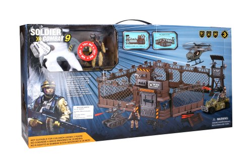 ojenské opevnenie s vrtuľníkom s efektmi. Vozidlá strieľajúce náboje a sieť. Obvod opevnenia 177 cm. Veľkosť vrtuľníka 25 cm, vojakov 10 cm. Svetelné a zvukové efekty tlačidlami na ľavej strane vrtuľníka. 3xAG10 batérie do vrtuľníka súčasťou. Obsah - vrtuľník, 2 strieľajúce vozidlá, opevnenie, debna s nábojmi, sieť, zbrane, 3 figúrky vojakov.