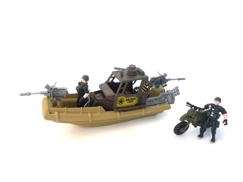 Sada s vojenskou hliadkovou loďou, 2 vojakmi a množstvom doplnkov.
