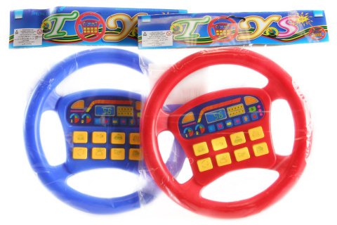Plastový volant so zvukmi. Veľkosť volantu cca 19 cm. Hračka je funkčná na dve AA batérie, ktoré nie sú súčasťou vý robku. V 2 farba ch. Vek 3 +