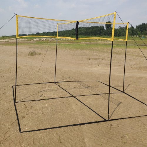 Hra Crossnet prvýkrát dobyla pláže v USA v roku 2018. Vznikla spojením hry foursquare a volejbalu. Je to prvá volejbalová hra, ktorá sa hrá do kríža, je veľmi pestrá a akčná. Hrá každý proti každému a tak musíte byť neustále v strehu. Jednoducho ideálna zábava na letné dni. Jednoduchý set VolleyCross je určený pre začínajúcich a rekreačných hráčov. Výšku siete je možné prispôsobiť podľa potreby hráčov vďaka rozkladacím tyčkám konštrukcie (maximálna výška 2 m, dĺžka jednotlivých dielov tyčiek je 0,5 m). Set je určený na piesok alebo trávnatý povrch. Obsah balenia: 1x sieť – žlto olemovaná, výška 0,5 m, dĺžka 4 x 1,5 m 4 x rozkladacia hliníková tyčka o max.dĺžke 2 m, priemer 16mm 4 x napínacie lano 6 x textilné lajná na ohraničenie hracích polí ihriska 8 x kotviaci kolík 1 x prenosný vak na uloženie celého setu Materiál: hliník (tyčky), oceľ (kolíky), PE – polyetylén (sieť, lajny, upínacie laná) Pravidlá hry Crossnet: - Po postavení ihriska sa očíslujú hracie štvorce 1 až 4. Každý hráč obsadí jeden z nich – na základe žrebu. V každom štvorci môže hrať aj viac hráčov. - Hra začína podaním hráča zo štvorca číslo 4 a to spoza zadnej čiary. Servis mieri krížom do štvorca 2. Musí byť vykonaný jednou rukou a tvrdou časťou dlane. Prijímajúci hráč nesmie udrieť balón nad sieťou. Toto pravidlo platí však iba pri príjme podania. - Pri následnej hre má každý hráč len jeden dotyk. Blok sa ako dotyk nepočíta. - Výmena končí chybou jedného z hráčov. - Po chybe sa hráči v poliach točia. Hráč, ktorý chyboval, sa presúva do štvorca 1 a zostávajúci hráči rotujú v smere hodinových ručičiek smerom ku štvorcu 4. Príklad: hráč v 4 pokazí. Presunie sa teda do 1. Hráč z 1 do 2, hráč z 2 do 3 a hráč z 3 do 4. - Bod sa dá získať len vo štvorci 4. Ak urobí chybu ktokoľvek zo štvorca 1, 2 alebo 3, hráč v 4 získava bod. Pokiaľ výmenu pokazí hráč v 4, nikto bod nezíska a hráči sa premiestnia o jedno miesto v smere hodinových ručičiek. - Hrá sa do jedenástich bodov a výsledný rozdiel musí byť o dva body. - Dotyk siete a prešľap pri podaní sú chyby.
