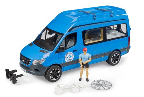 Kempovanie je úplne trendy. Nový MB Sprinter je mimoriadne úspešný ako základný model pre obytné vozidlá. Verzia nového obytného vozidla MB Sprinter od firmy BRUDER zaujme svojim množstvom detailov a všestranností. Vozidlo má otváracie dvere na kabíne vodiča av zadnej časti. Tu má figúrka z Bworldu, ktorá je súčasťou balenia, prístup k integrovanej manželskej posteli a veľkému úložnému priestoru. Zvláštnym prvkom sú novo vyvinuté posuvné dvere na strane spolujazdca, ktorými sa dostanete ku kuchynskej linke. Pre slnečné dni má obytný automobil rozkladaciu markízu a tiež štýlový kempingový nábytok a riad. Kompatibilný s figúrkami Bworld. Vyrobené z vysoko kvalitných plastov, ako je ABS. Mierka 1:16. Možno použiť na hru vo vnútri aj vonku. Rozmery auta: 19,7 x 16,3 x 43,5 cm. Rozmery balenia: 23 x 18,9 x 57,2 cm. Vek: 4+