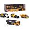 Volvo Edícia darčeková sada 4 kovových áut a stavebných mechanizmov na voľnobeh (pásové rýpadlo, kolesový nakladač, damper, ťahač s korbou), s otváracími časťami. Dĺžka autíčka 7,5 cm.