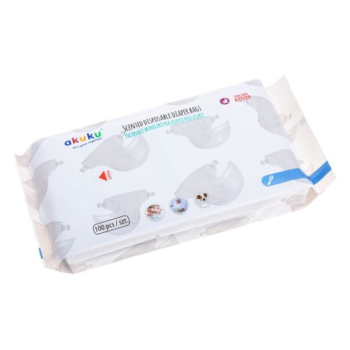 Sada jednorazových parfumovaných vreciek hygienickým spôsobom zaistí likvidáciu použitých detských plienok, vreckoviek alebo obrúskov. Tento praktický pomocník by nemal chýbať na každom prebaľovacom pulte, taške alebo kočíku na prechádzke. Sú dostatočne veľké pre všetky rozmery plienok. Balenie je opatrené jednoduchým uzáverom a obsahuje 100 sáčkov.