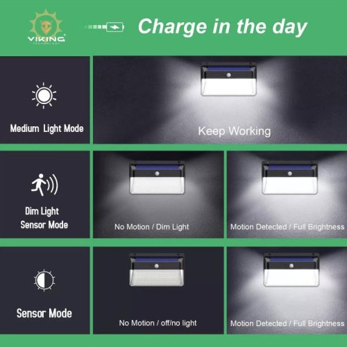 Vonkajšie solárne LED svetlo s pohybovým senzorom VIKING M328 - 2ks v balení •Solárne LED svetlo s pohybovým senzorom as 328ks vysoko svietiacimi LED diódami bez možnosti pripojenia k elektrickej sieti, ako je napr. záhrada, vstup do domu atď. •Vďaka solárnemu napájaniu je LED svetlo úplne sebestačné a nezávislé na napájaní z elektrickej siete. •Jeho inštalácia je veľmi jednoduchá a ste tak schopní osvetliť akékoľvek priestory za niekoľko okamihov a bez ďalšej potreby kabeláže. •Batéria v sol. svetlách poskytujú dostatočný výkon pre celonočné osvetlenie. Ďalšou výhodou, okrem jednoduchej montáže a mobility, je ich individuálne nastavenie intenzity osvetlenia podľa aktuálnej potreby. •Vstavaný pohybový senzor detekuje pohyb v rozmedzí do 8m v pozorovacom uhle 120°, zároveň dokáže rozpoznať falošný pohyb (pohyb vetiev, vietor, atď.). •Rozptyl svetla až do 270°! •Odolnosť proti dažďu a vode IP65 (dážď, striekajúca voda, prudký vietor s dažďom, sneh, atď). •Výhodou svetiel radu M, je ochranný plastový kryt LED svetiel s pravidelnými lomami na vnútornej strane, ktoré zaisťujú lepšiu svetelnú vodivosť a rozptyl svetla, proti jednoduchému, číremu krytu.