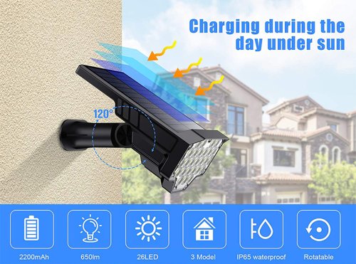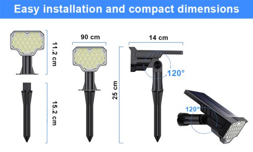 Solárne LED svetlo s 26 vysoko svietiacimi LED diódami je ideálne na osvetlenie vonkajších priestorov bez možnosti pripojenia k elektrickej sieti, ako je napr. záhrada, vstup do domu atď. Vďaka solárnemu napájaniu je LED svetlo úplne sebestačné a nezávislé na napájaní z elektrickej siete. Jeho inštalácia je veľmi jednoduchá. Či už svetlo nainštalujete na stenu, alebo zapichnete do zeme , ste schopní osvetliť akékoľvek priestory za niekoľko okamihov a bez ďalšej potreby kabeláže.