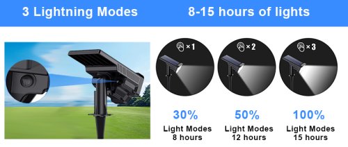 Batéria v solárnom svetle poskytuje dostatočný výkon pre celonočné osvetlenie . Doba svitu záleží na intenzite svetla. Podľa vybraného svetelného režimu vám LED svetlo vydrží svietiť 8-15 hodín .