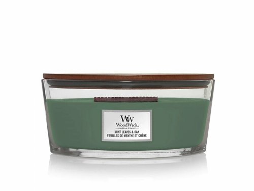 Vonná sviečka Mint Leaves & Oak v sebe ukrýva vôňu čerstvých lístkov mäty, ktorá dodáva žiarivú sviežosť drevitému akordu zeleného machu, obhoreného dubu a cyprusu. Vďaka jedinečnému knôtu HEARTHWICK® FLAME prináša tento typ sviečky zážitok dokonalého pohodlia pri horiacom krbe. Jemný zvuk praskania a dlhý tancujúci plameň vytvára neopakovateľnú atmosféru. Horí až 50 hodín. Zmes prémiového parafínu a sójového vosku s vysoko koncentrovanými vôňami zaisťuje čisté horenie bez nepríjemných zvyškov. Vonné esencie boli starostlivo vybrané, aby naplnili miestnosť dlhotrvajúcou vôňou. Otvorený tvar sviečky zvyšuje plochu odparovania vonných esencií z voskového jazierka a zaisťuje rovnomerný vonný zážitok.