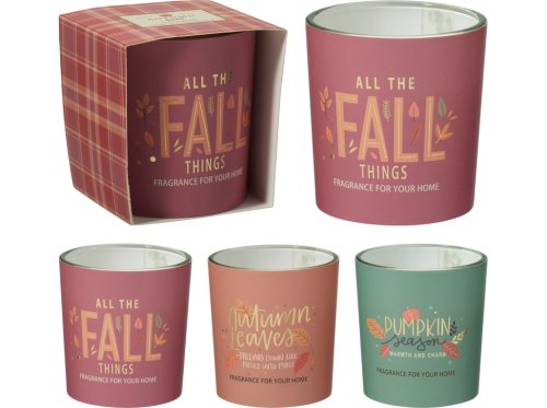 Elegantná sviečka v pohári s výraznou jesennou vôňou (napr. jablko, škorica). Dodávaná v darčekovej papierovej krabičke s dekorom. Ideálna ako pozornosť alebo milý doplnok do interiéru. Tovar je dodávaný v mixe. Doručovaný tovar je vyberaný náhodne a nie je možné vybrať konkrétne prevedenie.