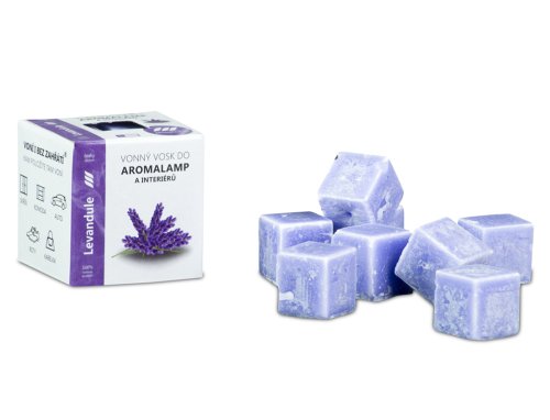 Vonný vosk Levanduľa je vyrobený z kvalitného palmového vosku a vonných esencií, ktoré zaisťujú jemnú a dlhotrvajúcu vôňu levandule s upokojujúcim účinkom. Vosk je rozdelený do 8 kociek, ktoré je možné použiť v elektrických aj klasických aromalampách na čajovú sviečku. Je vhodný na osvieženie interiérov a je možné ho používať priamo v priestore bez nutnosti aromalampy. Rozmery: dĺžka 1,6 cm, šírka 1,6 cm, výška 1,6 cm. Hmotnosť: 30 g. Farba: fialová.
