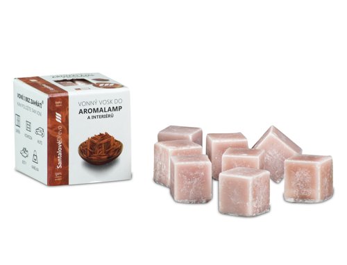 Vonný vosk Santalové drevo je vyrobený z kvalitného palmového vosku a vonných esencií, ktoré zaisťujú teplú, drevitú a dlhotrvajúcu vôňu santalového dreva. Vosk je rozdelený do 8 kociek, ktoré je možné použiť v elektrických aj klasických aromalampách na čajovú sviečku. Je vhodný na osvieženie interiérov a je možné ho používať priamo v priestore bez nutnosti aromalampy. Rozmery: dĺžka 1,6 cm, šírka 1,6 cm, výška 1,6 cm. Hmotnosť: 30 g. Farba: svetlo hnedá.