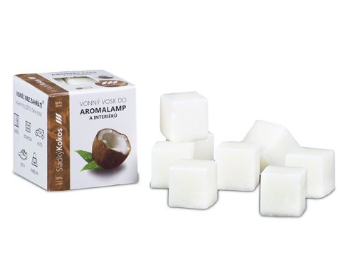 Vonný vosk Sladký kokos je vyrobený z kvalitného palmového vosku a vonných esencií, ktoré zaisťujú sladkú, exotickú a dlhotrvajúcu vôňu kokosu. Vosk je rozdelený do 8 kociek, ktoré je možné použiť v elektrických aj klasických aromalampách na čajovú sviečku. Je vhodný na osvieženie interiérov a je možné ho používať priamo v priestore bez nutnosti aromalampy. Rozmery: dĺžka 1,6 cm, šírka 1,6 cm, výška 1,6 cm. Hmotnosť: 30 g. Farba: biela.