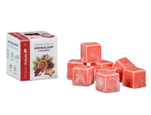 Vonný vosk Vianočná pohoda je vyrobená z kvalitného palmového vosku a vonných esencií, ktoré zaisťujú teplú, korenenú a dlhotrvajúcu vôňu vianočných sviatkov. Vosk je rozdelený do 8 kociek, ktoré je možné použiť v elektrických aj klasických aromalampách na čajovú sviečku. Je vhodný na osvieženie interiérov a je možné ho používať priamo v priestore bez nutnosti aromalampy. Rozmery: dĺžka 1,6 cm, šírka 1,6 cm, výška 1,6 cm. Hmotnosť: 30 g. Farba: červená.