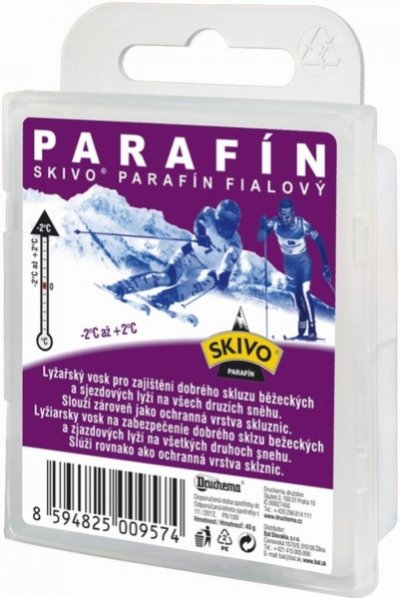 Návod na použitie: pre zaistenie dobrej trvanlivosti voskovania odporúčame parafínové vosky do sklznice zažehliť. Vosk aplikujte na vyčistenú sklznicu, zbavenú zvyškov voskov a nečistôt. Žehličku nahrejte na teplotu 120 - 140 °C. Vosk priložte k žehličke a nechajte nahriať. Potom zmäknutý vosk rýchlo priložte k sklznici a rozotrite. Opakujte postup po celej dĺžke sklznice tak, aby ste vytvorili dostatočne hrubú vrstvu vosku (tým zamedzíte priamemu kontaktu žehličky so sklznicou). Teraz vosk zažehlite do sklznice, vždy dodržujte smer žehlenia od špičky k päte. Vosk by mal iba topiť, jeden ťah by mal trvať asi 20 sekúnd. Lyže nechajte vychladnúť na izbovú teplotu. Počas tejto doby „natiahne“ sklznica potrebný vosk do pórov. Prebytočný vosk stiahnite pomocou škrabky Skivo plexi škrabka. Na záver sklznicu prekefujte mäkkou leštiacou kefou a preleštite utierkou Skivo.
