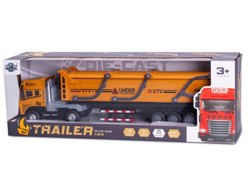 Vozidlo nákladné 39 cm 1:24 kov na batérie na zotrvačník so svetlom a zvukom - mix farieb (hnedá, oranžová)