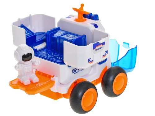 Vozidlo vesmírne 9,5 cm na zotrvačník s astronautom - mix farieb (oranžová, zelená)