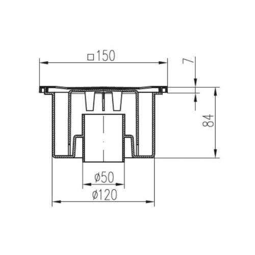 Podlahová vpusť spodná s vodnou hladinou a nerezovou mriežkou je určená na vnútorné použitie do technických priestorov, kúpeľní a pod.
