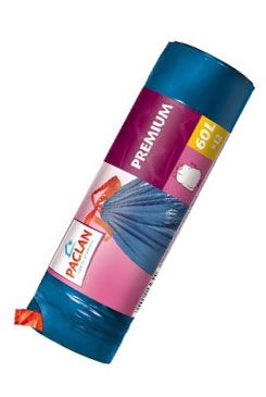 Balenie 10 kusov modrých príponkových vriec na odpatky s objemom až 60 l. Uchovávajte mimo dosahu detí. Ostré predmety zabezpečte.