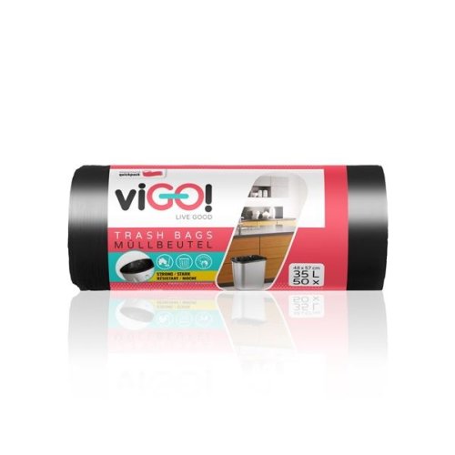 • Čierne odpadkové vrece viGO! je vyrobená z kvalitného HDPE materiálu (polyetylén vysokej hustoty)
