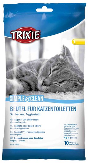 Vrecká na mačacie toalety. Uľahčujú čistenie toaliet. Fungujú ako vrecká do odpadkových košov. Vrecko sa dáva na dno toalety a nasype sa naňho mačkolit, ktorý sa potom odstráni s vreckom. Vyhnete sa zašpineniu toalety. Balenie obsahuje 10 ks.