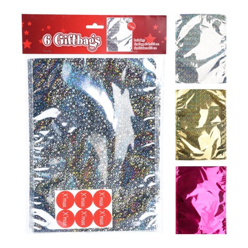 Vrecko darčekové 32 x 24 cm (6 ks), samolepky pr. 3 cm (6 ks), dekor č. 1, mix farieb.