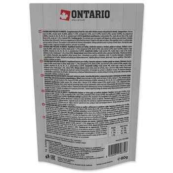 Mäso a výrobky živočíšneho pôvodu, ryby a výrobky z rýb 57,56% (kuracie mäso 45,48%, treska polak 11,73%, ryba bonito 0,35%), kurací vývar 41,06%, karagenan 0,9% , škrob 0,39%, taurín 0,078%, extrakt z čaju 0,008%, vitamíny (A, B2, B3, B5, D3, E, polydextróza) 0,004%.