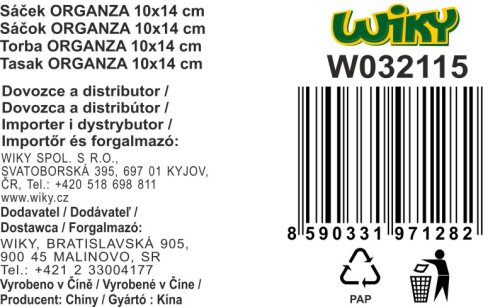 Vrecko ORGANZA o veľkosti 10x14 cm Vianoce. 2 farebné prevedenie - zlatý, strieborný.