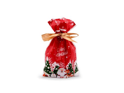 Sťahovacie vrecká s vianočnými motívmi oceníte na darčekové balenie rôznych balených pochutín, ale tiež napríklad kozmetiky, sviečok a iných maličkostí. Sťahujú sa pomocou saténovej stuhy. Vrecká sú matné, zdobené potlačou z oboch strán. Majú rozšírené dno. Výška vrecka po stuhu je 12 cm.