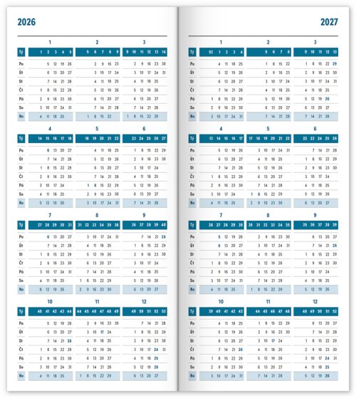Praktický tenký diár s motívom obrazov Alfonsa Muchy s mesačným rozložením sa zmestí skutočne všade.