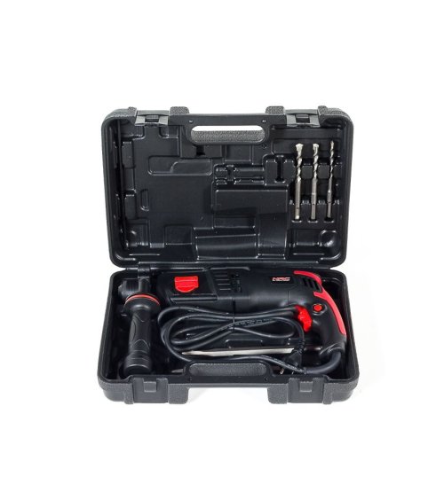 Vŕtacie kladivo NAC HE90-LD SDS-Plus s výkonom 900 W využijete pri renováciách, inštaláciách, na ľahké stavebné práce a najrôznejšie opravy. S príklepom s ním môžete vŕtať do kameňa, betónu alebo tehál . Kladivo je možné použiť aj na bezpríklepové vŕtanie do dreva, keramiky a kovu . Pre bezpečnejšiu prepravu slúži praktický plastový kufor , do ktorého sa zmestí vŕtačka, 3 vrtáky a 2 sekáče.