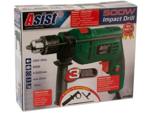 Pokiaľ hľadáte spoľahlivú, dostatočne výkonnú vŕtačku, tak presne takú ste práve našli. Ide o príklepovú vŕtačku ASIST AE1P50DN-3. Je vhodná na domáce a hobby použitie. Môžete s ňou vŕtať do dreva, kovu, plastu, betónu, tehál, a pod. Pre presné vŕtanie vám určite pomôže hĺbkový doraz, ktorý je súčasťou balenia.