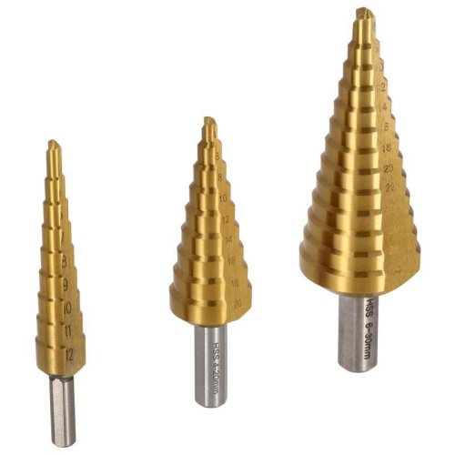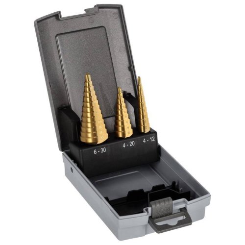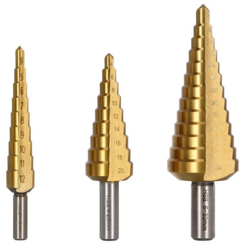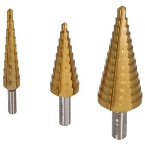 stupňovité vrtáky na použitie v materiáloch s hrúbkou do 4 mm na vetranie bez otrepov