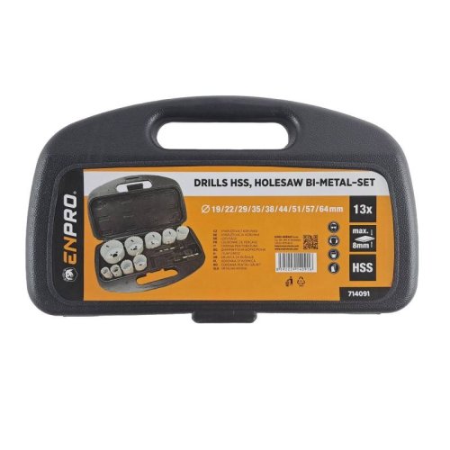 sada korunkových vrtákov BI-METALL vysoko kvalitné korunky z HSS Bi- Metallu korunky priemer: 19, 22, 29, 35, 38, 44, 51, 57, 64 mm vhodné na vŕtanie dreva, drevotriesky, sadrokartónu a kovov do hrúbky 8mm.
