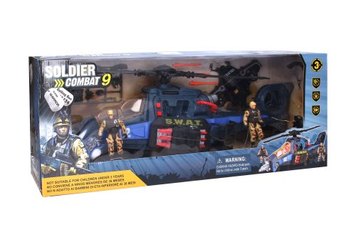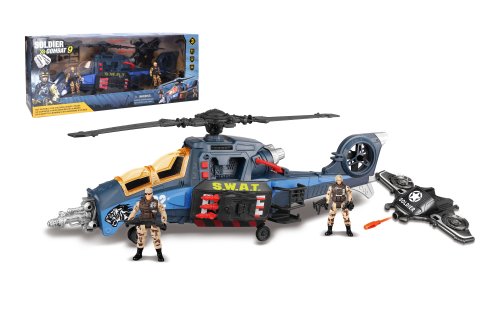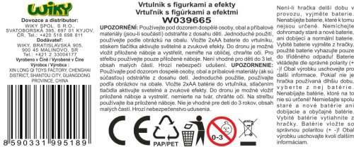 Vrtuľník s figúrkami a efektmi. Dron strieľajúce náboje. Veľkosť vrtuľníka 60 cm, vojakov 10 cm. Svetelné a zvukové efekty tlačidlami na ľavom boku vrtuľníka. 2xAA batérie do vrtuľníka nie sú súčasťou. Obsah - vrtuľník, dron, náboje, zbrane, 2 figúrky vojakov. Obrázkový návod na používanie na zadnej strane obalu.