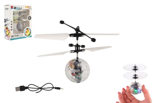 Vrtuľníková guľa so zabudovaným čidlom ponúka možnosť ovládať jej let pomocou dlane. Deti môžu rukou určovať výšku letu. Za letu guľa svieti. Nevyhadzujte do vzduchu, iba postavte na ruku. Balenie obsahuje aj USB kábel pre rýchle dobíjanie. Rozmery balenia 16 x 19 x 6 cm. Vhodné pre deti od 14 rokov.