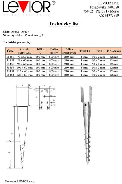 Vrut zemný kotevný "U" 700 x 70 x 60 x 100 mm / 4 mm.