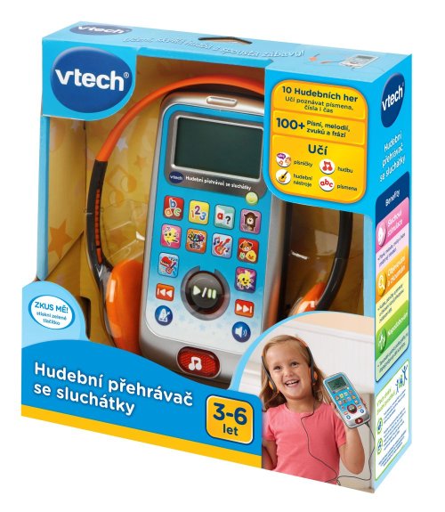 Vtech Hudobný prehrávač so slúchadlami™ učí deti spoznávať čas, písmená a čísla. Zároveň rozvíja logické uvažovanie a hudobné cítenie. Učia deti rytmus a spoznávať hudobné nástroje. Obsahuje 10 hudobných a tanečných hier. Súčasťou sú aj bezpečné slúchadlá s obmedzenou hlasitosťou, tak aby nepoškodzovali sluch dieťaťa.