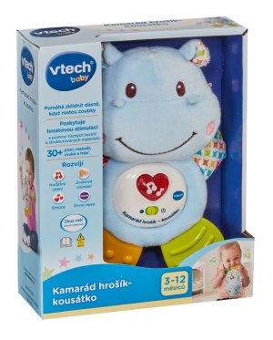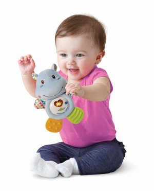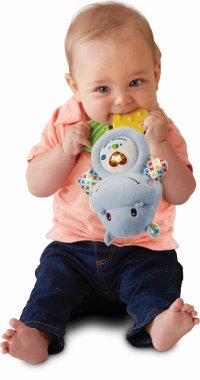 Tento hrošík je ideálny pre každé bábätko, ktorému rastú zúbky. Mäkké nožičky aj ručičky sú špeciálne vyvinuté na masáž detských ďasien. Hrošík je ľahučký, príjemný na dotyk, roztomilo hovorí aj zaspieva. Stláčanie svietiaceho červeného srdiečka rozvíja interakciu a jemnú motoriku dieťaťa. Po jednoduchom vybratí hracieho modulu je možné hračku vyprať.