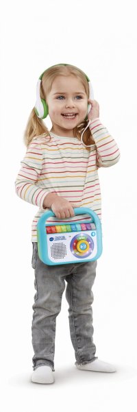 Kidi hit je prvý hudobný prehrávač s nahrávaním od VTech špeciálne vyvinutý pre deti, ktorý naučí tiež spoznávať čísla, písmená aj farby. Obsahuje 40 skladieb a českých piesní. Navyše je možné nahrať si vlastný spev alebo pripojiť externý prehrávač (nie je súčasťou) cez Bluetooth®! Farebné tlačidlá, osvetlený volič a rukoväť presne padnúci do detských ručičiek urobí z prehrávača Kidi hit úplne dokonalú hudobnú zábavu. Navyše je možné pripojiť aj slúchadlá (nie sú súčasťou)