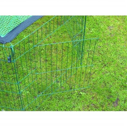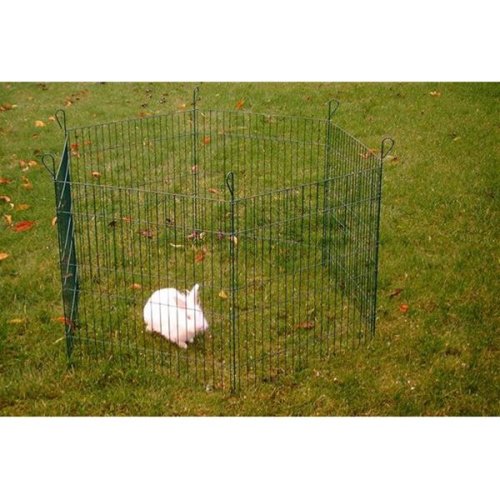 Skladacia ohrada je vhodná na chov králikov, väčších hlodavcov, mláďat hydiny a pod., ktorým zabráni v úniku a poskytne ochranu pred dravcami. Výbeh je tvorený šiestimi drôtenými panelmi, ktoré sa prepájajú a ukotvujú k zemi dlhými železnými kolíkmi. Jeden z panelov je opatrený dvierkami. K výbehu je možné prikúpiť šesťuholníkovú ochrannú sieť (ZB009777). Rozmery: Ø 108 cm panel 60 × 63 cm (d × v) Hmotnosť: 4,5 kg Materiál: kov Farba: zelená Upozornenie: Výbeh by mal byť vždy aspoň sčasti zatienený.