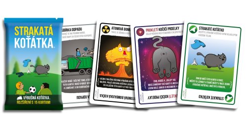 Prichádza super várka nových kariet do vašej obľúbenej mačacej hry! Tešiť sa môžete napríklad na ultimátne prekliatie mačacie riti, ktoré zbavuje jedného hráča možnosti pozerať sa na svoje karty. Hlavným vlajkonošom tejto edície je zaiste Strakaté mačiatko a jeho super schopnosť držania Výbušného mačiatka v ruke. Potešíme tiež milovníkov poriadnych výbuchov - Atómová bombajská mačka - s ňou všetky sranda končí... Alebo nie? Strakaté mačiatka obsahujú 15 nových kariet, ktoré musíte mať!